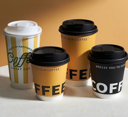 Premium takeaway paper cups with custom logo printing, designed for commercial beverage service while prioritizing environmental responsibility.